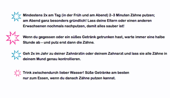 Wichtig ist, dass man den Zahnbelag auch wirklich von allen Zahnflächen entfernt. Am leichtesten fällt das, wenn man nach einem bestimmten System vorgeht. Am besten lernen Kinder von Anfang an ein solches System.